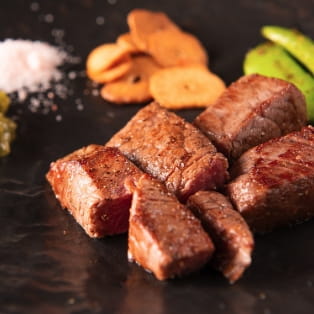 肉料理だけでなく、季節ごとの旬野菜や魚介料理にもこだわっています。野菜はお肉の添え物ではなく、ひと皿として楽しめる存在に。魚介は白身魚を中心に、ふっくらと旨みを引き出す焼き加減で仕上げます。鉄板料理だからこそ味わえる、日本の四季を感じる美味しさをお楽しみください。